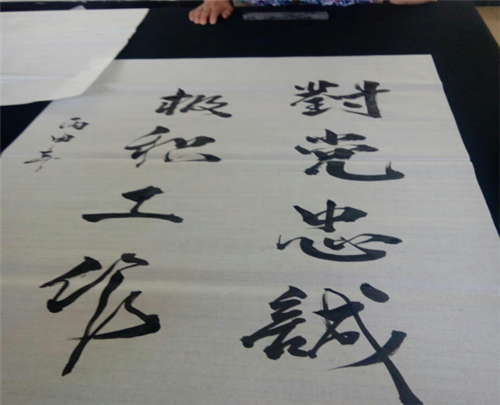 本次书画笔会内容紧扣“两学一做”主题,既有习近平总书记系列重要讲话中引述的古典名句,又有“两学一做”教育重点要求,内容丰富、喻意鲜明。大家一致认为,习总书记的系列重要讲话是马克思主义中国化的最新成果,凝聚着中华优秀传统文化的精华。通过“两学一做”学习教育,深入学习和广泛宣传习总书记的系列重要讲话精神,是社区文化建设的重要内容,也是艺术家、广大社区工作者和社区党员干部必须承担的重要责任。