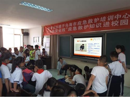 为增强社区工作人员及辖区青少年的应急救护知识,掌握基本应急救护技能,能够在突发伤病事故现场组织自救互救、科学施救。2016年6月29日上午,我社区携手乌海市应急救护培训中心在海区一完小举办了应急救护培训班,共有80人参与。这次培训的主要内容是现场急救四项技术:外伤止血、伤口包扎、骨折固定、伤员搬运;现 场 心 肺 复 苏 术(CPR):单人操作法;伤害现场自救互救:割破伤、摔扭伤、烫伤、冻伤等。培训中,培训讲师首先向工作人员及青少年视频展示这次培训所学的内容,最后还进行模拟示范和现场指导工作人员进行实践操作。
