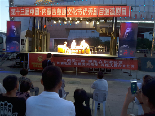 为弘扬廉政文化,6月30日晚上8点30分,在乌海市文体中心小广场,参加人员有社区居民、社区工作人员共400人次。内蒙古草原文化节优秀剧目组走进长青社区,为我社区送上反腐倡廉话剧《母亲》,剧中讲述的故事紧扣反腐倡廉这一主题,讴歌了母亲的大爱和人性的光辉,发人深省。启示广大党员干部,就算亲人利益再高,也决不能超越党和人民的利益,决不能突破纪律与法律的底线。