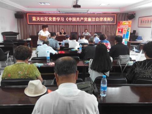 蓝天社区党委开展集中学习《中国共产党廉洁自律准则》活动